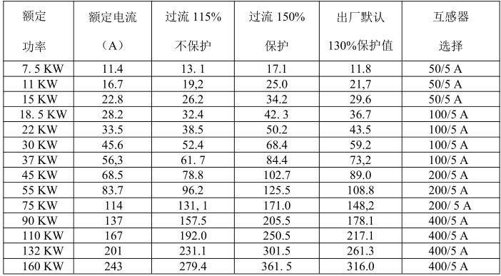 可設置范圍:7.5、11. ,15. 18.5、22、30、37、45、55、75、90、110、132、160、185、200.220、