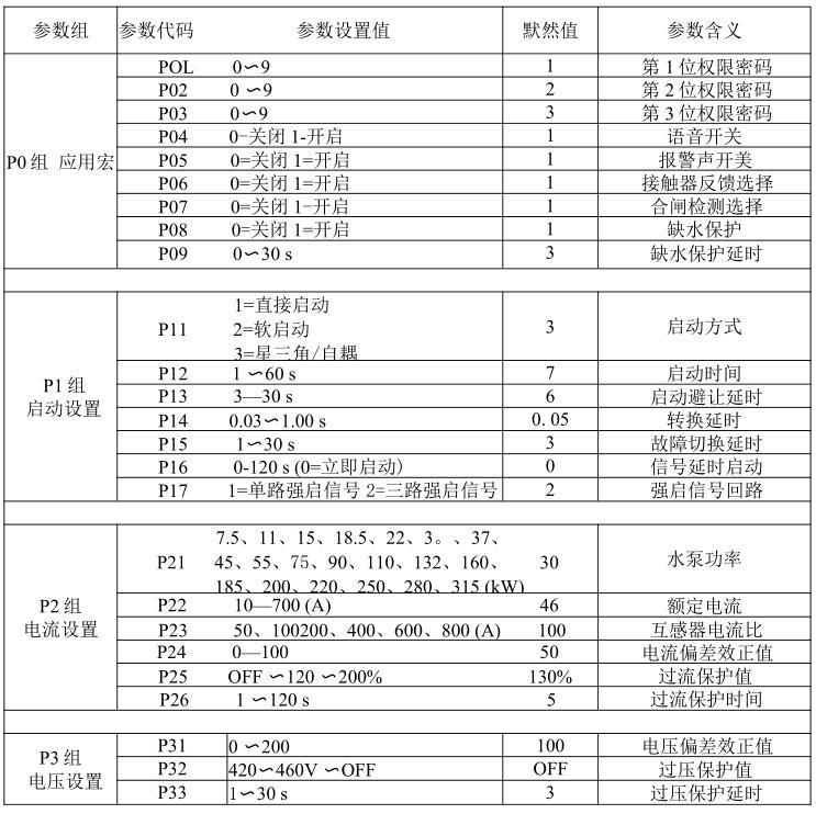 該參數定義:只針對星三角降壓/白耦啟動方式的啟動時間(出廠默認為“7” )