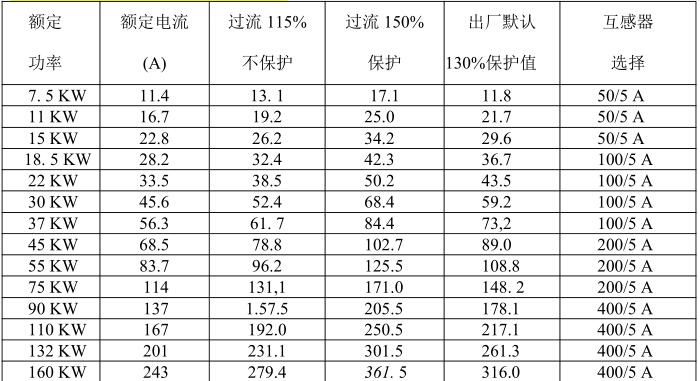 可設置范圍:73、11、15、250、280、18.5、22、30、37、45、55、75、315 單位為:kW